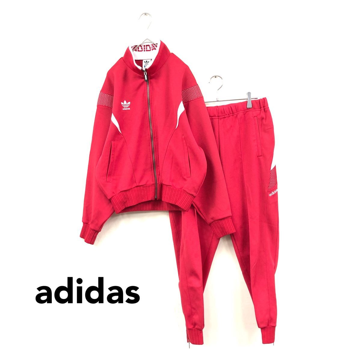 > 2O2702-N◆old◆90s~ adidas アディダス セットアップ トラックジャケット トラックパンツ デサント期◆sizeM レッド ポリエステル 古着