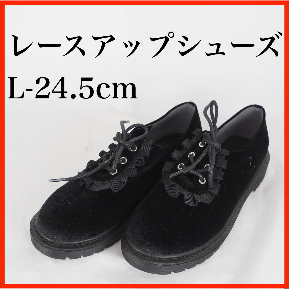 - OK6303*美品*レディースレースアップシューズ*L-24.5cm*黒