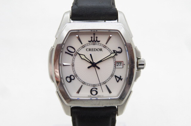 > 1円~【動品】SEIKO セイコー CRDOR クレドール パシフィーク 8J82-0AC0 メンズ クオーツ 腕時計 トノー ホワイト文字盤 ブラック 10-7-2