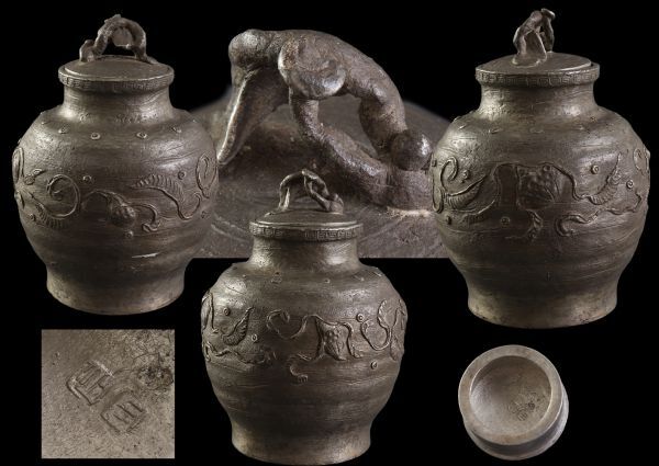 - 煎茶道具 古錫 霊芝 石榴紋 柘榴 茶芯壺 茶壺