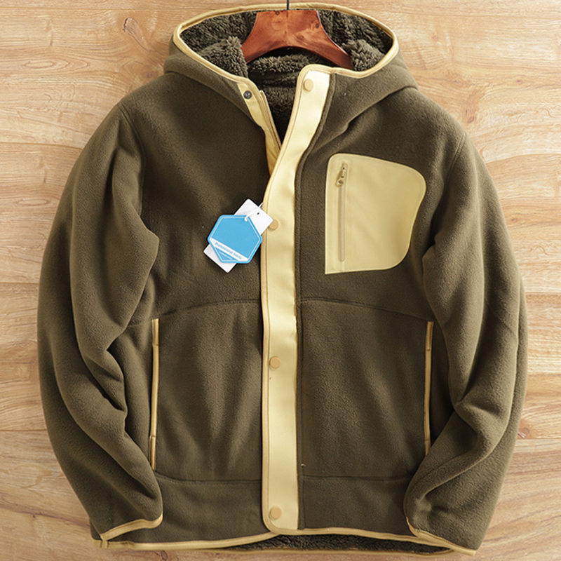 - Y818-L オリーブ 新品 フリースジャケット 超あったかい 厚手 防寒 秋冬 裏ボア フード付き 両面フリース アウター メンズ 冬服 トップス