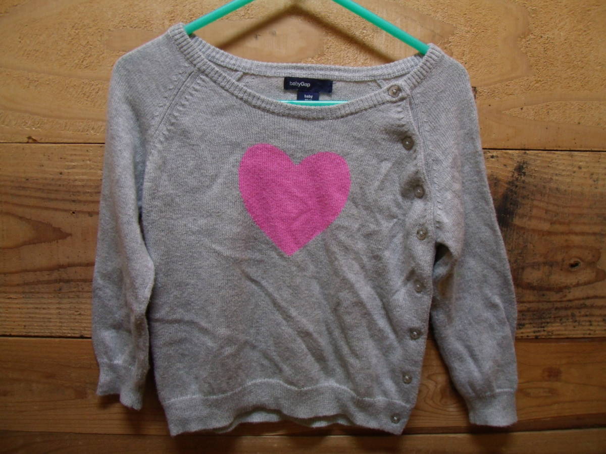 - 全国送料無料 ベビーギャップ baby GAP 子供服キッズベビー女の子前BIGハート柄 綿素材ボタン横開きニットセーター 80