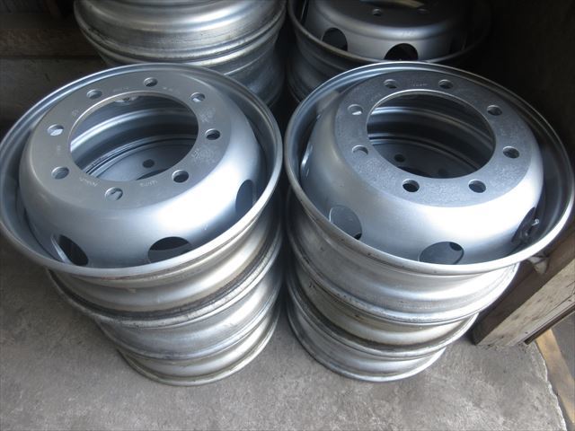 - 送料無料 4軸低床 増トン スチールホイール ISO方式 平面座 19.5×6.75 147-12 8穴 両面再塗装品 6本セット 在庫あり