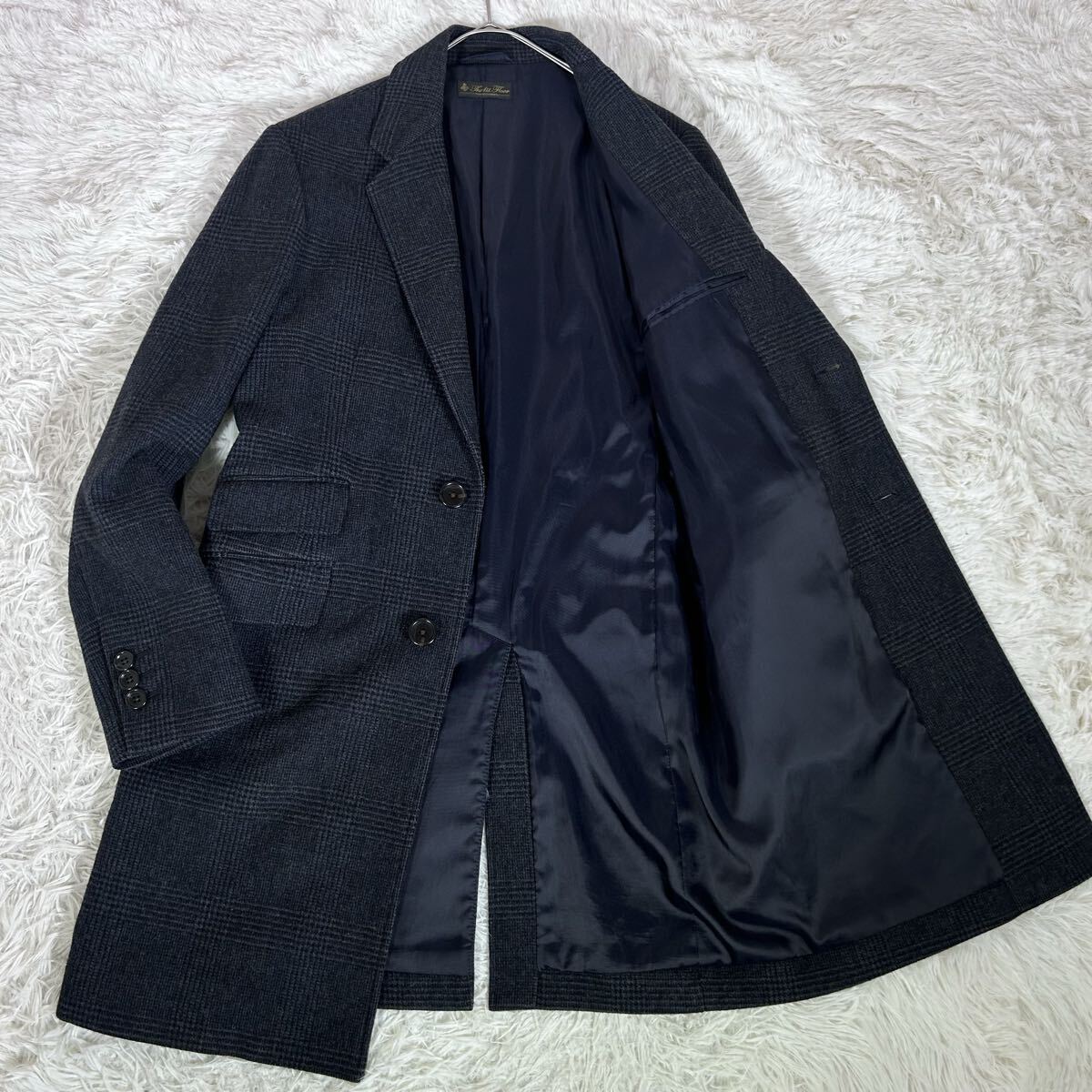 - 【美品】nano universe The1st.Floor ナノユニバース チェスターコート ウール 厚手 ツイード調 46 グレンチェック柄 チャコールグレー