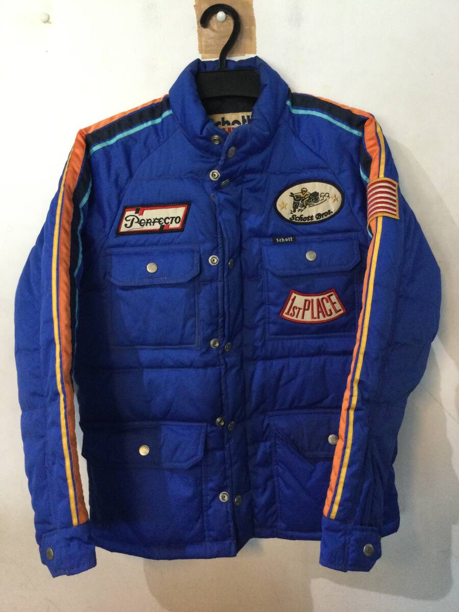 > SCHOTT ショット ナイロンジャンパー 中綿 表記Sサイズ 青色 ワッペン