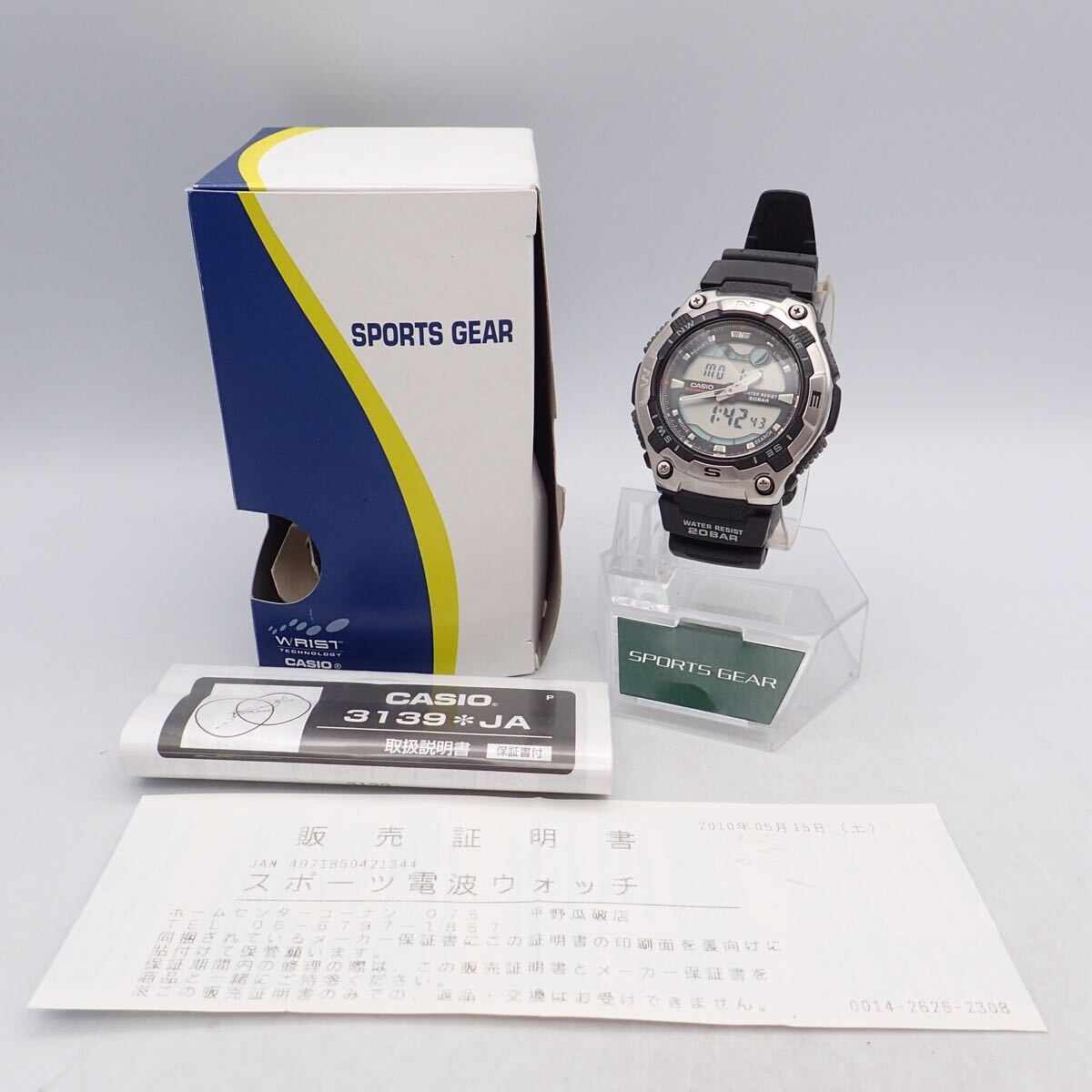 > お08250/CASIO カシオ/クオーツ/メンズ腕時計/タイドグラフ/ムーンフェイズ/3アラームズ/デジアナ/AQW-100/箱・付属品付