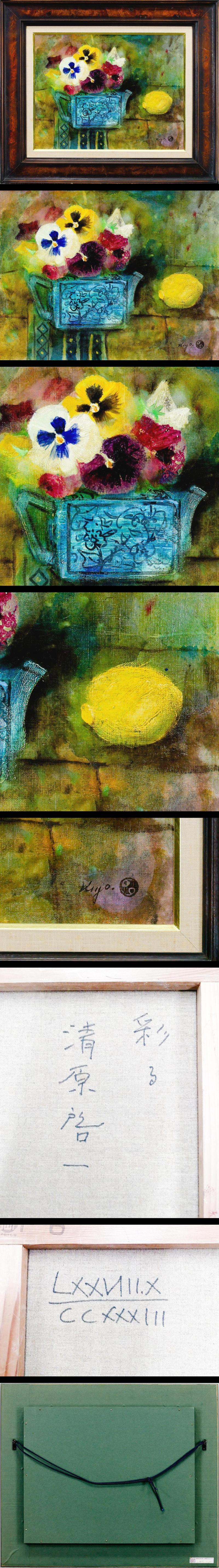 - 【真作】【WISH】清原啓一「彩る」油彩 6号 1978年作 ◆青の花器に咲く花々とレモン 〇日本芸術院会員 日展顧問 鶏の画家 #25102659
