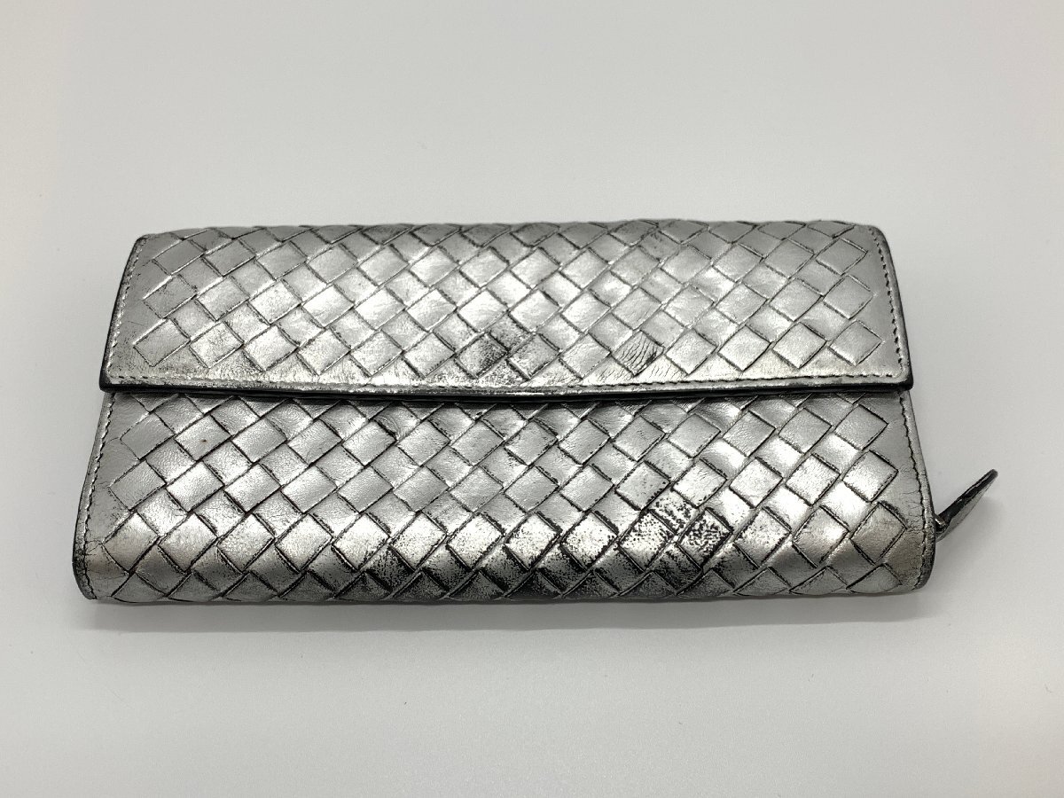 - BOTTEGA VENETA ボッテガヴェネタ イントレチャート 二つ折り財布 長財布 シルバー ☆良品☆[84-1004-2E12]