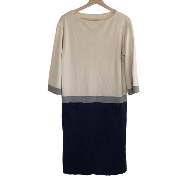 > ミスアシダ miss ashida サイズM - ネイビー×アイボリー レディース クルーネック/長袖/ロング/ニット ワンピース