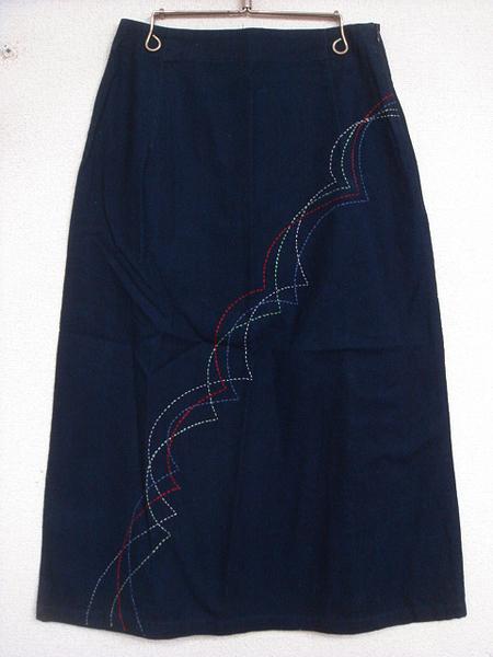 > ハリウッド ランチ マーケットhrm外人ガイジンGaijin Madeガーゼ藍インディゴ刺繍ロングLONGスカート