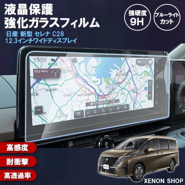 > [1019]日産 新型 セレナ C28 液晶保護 ガラスフィルム 12.3インチ カーナビ 強化ガラス 液晶保護 硬度9H 指紋 飛散防止 ブルーライトカット