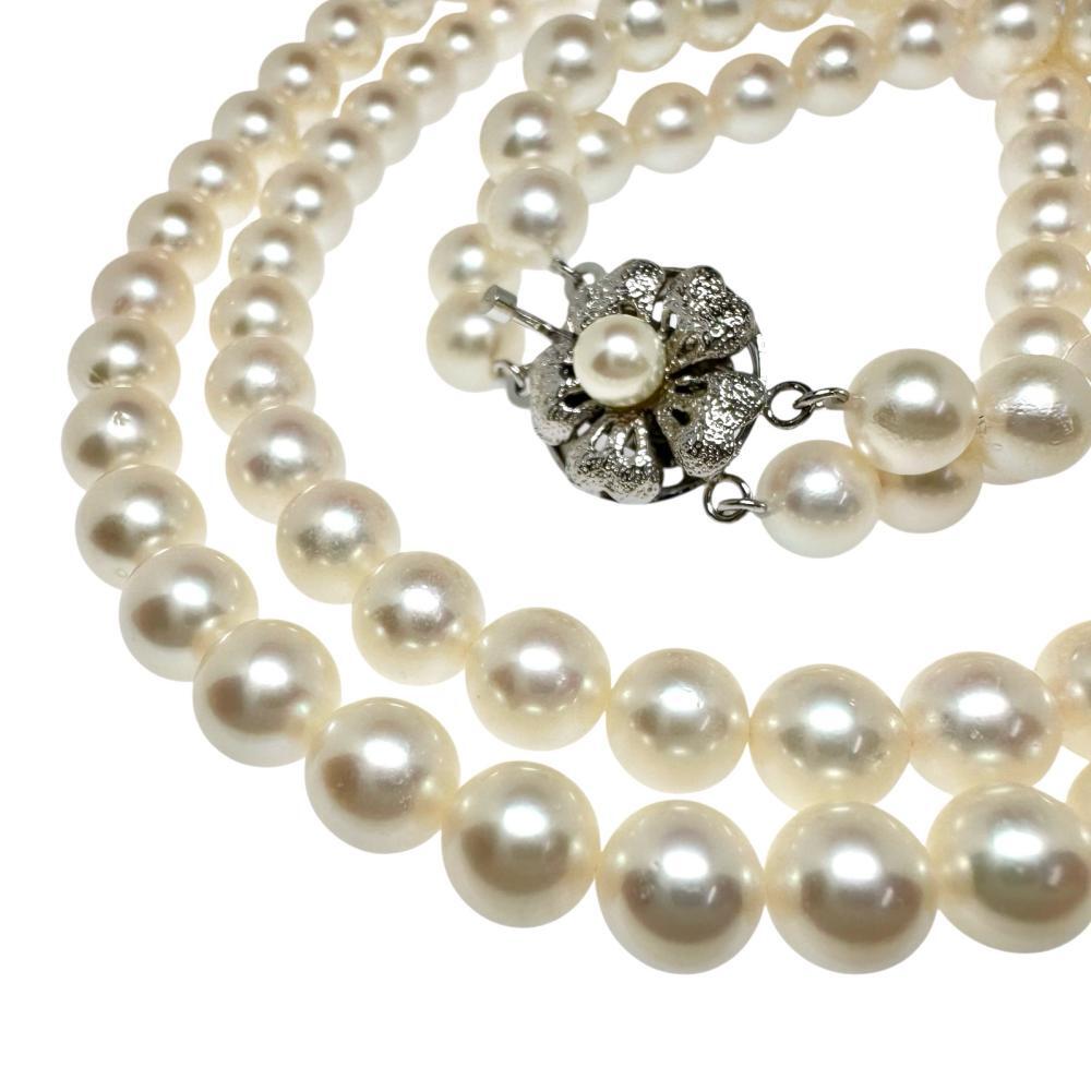 - 2連 アコヤ真珠7.0~7.5mm ネックレス シルバー 63.7g 42cm レディース