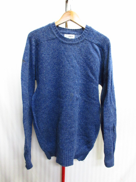 > アイルランド製 LINIAN セーター メンズL 90sヴィンテージ 青系 ピュアニューウールニット ニットトレーナー クルーネック 10222