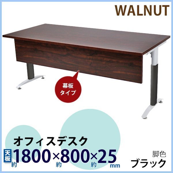 > 送料無料 オフィスデスク デスク 幕板付 約W1800×約D800×約H755 ウォールナット 平机 ワークデスク 事務机 会議テーブル 脚色 黒