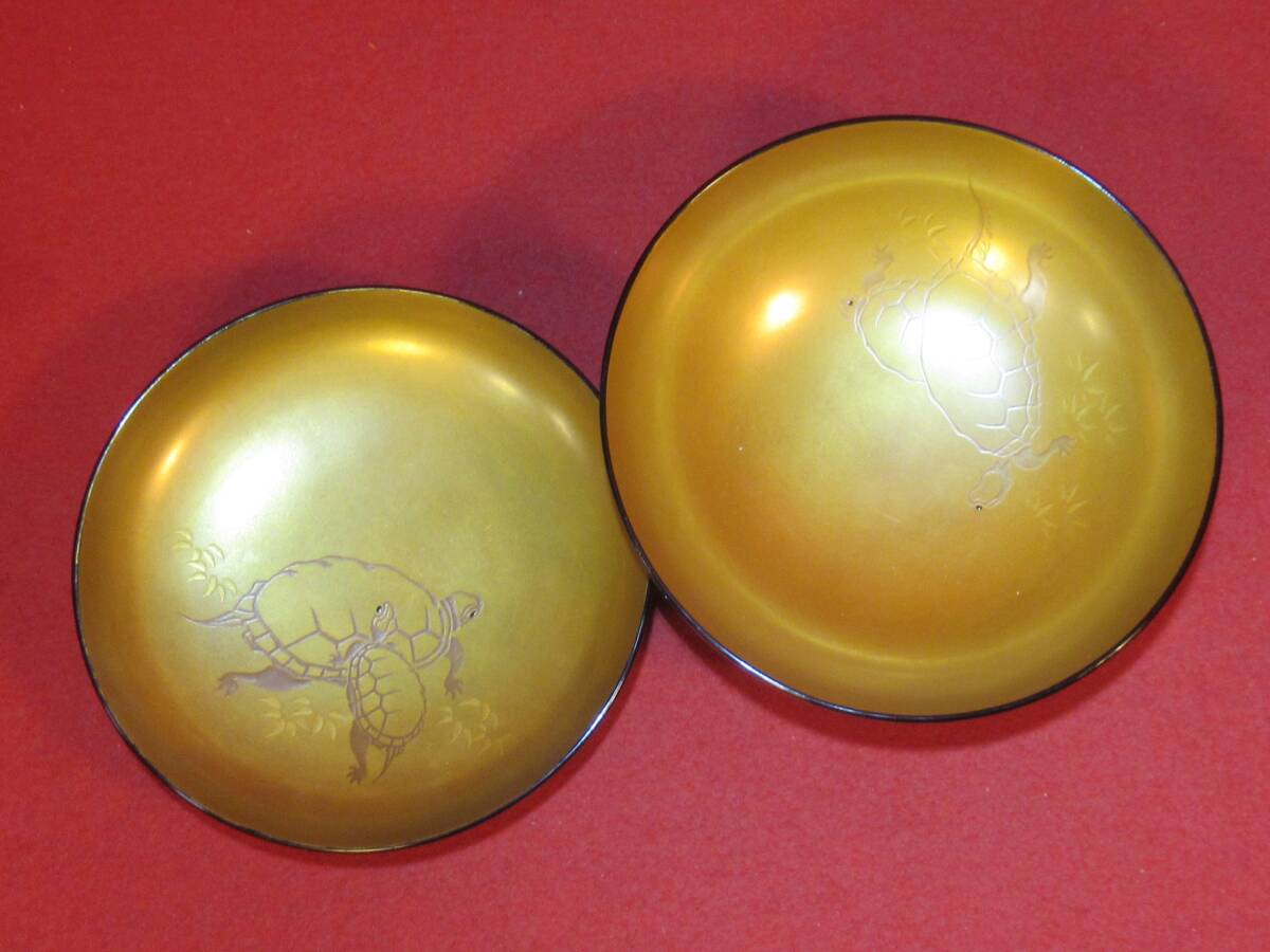 - 茶道具 『木製内金漆塗亀蒔絵吸物椀(径12,7×高さ7,8㎝)①』お祝いに 親子亀の蒔絵 珍品 美品 茶事 七事式 懐石料理 会席