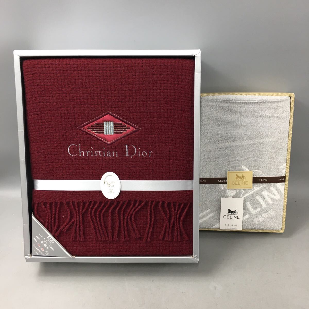 > ★F10111 未使用保管品2点セット Christian Dior ディオール 毛布 RUG 毛100% CELINE セリーヌ タオルケット 綿100% 布団 寝具