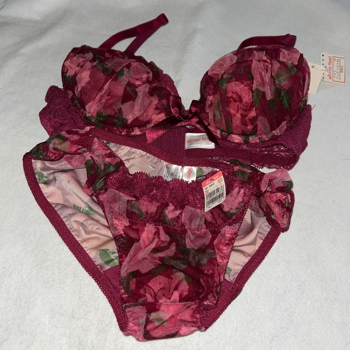 - エメフィール B65 M ツルツル ブラ ショーツ サテン シフォン 花柄 光沢 サラサラ すべすべ