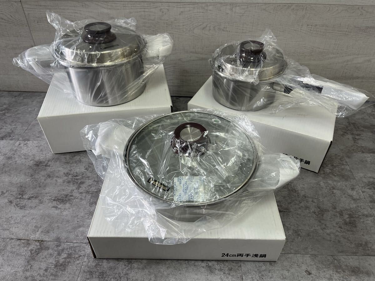 - TA333 ExcelHuman ステンレス 鍋 3点 セット 24cm 両手浅鍋 20cm 両手深鍋 18cm 片手鍋 エクセルヒューマン 未使用 長期保管品 現状品