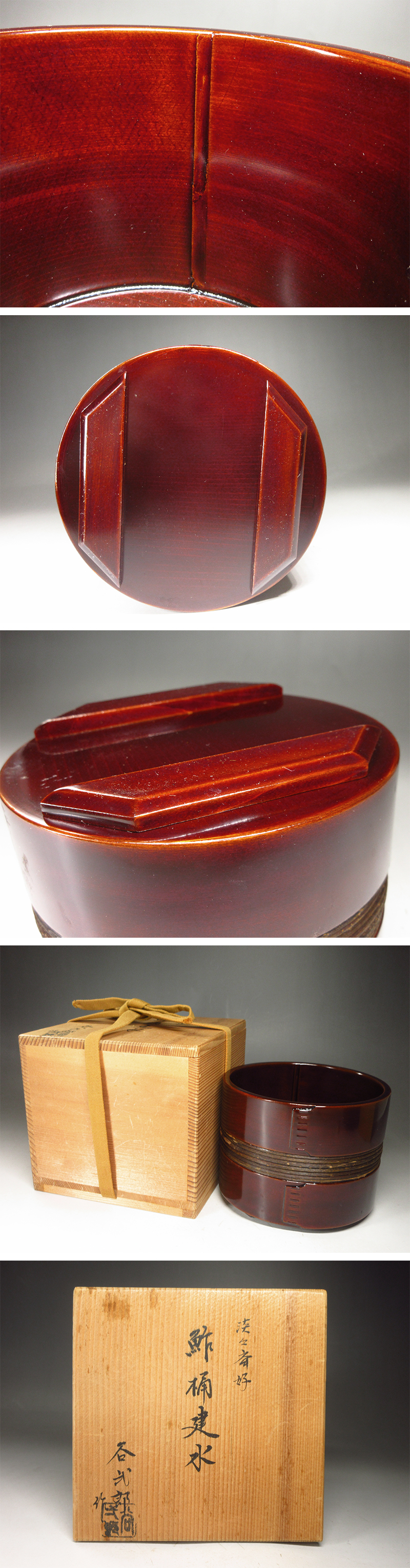- 【漸】『谷弌郎』造 淡々斎好 鮓桶建水 鮨桶 共箱 漆器 漆芸 茶道具 本物保証【HY2733】