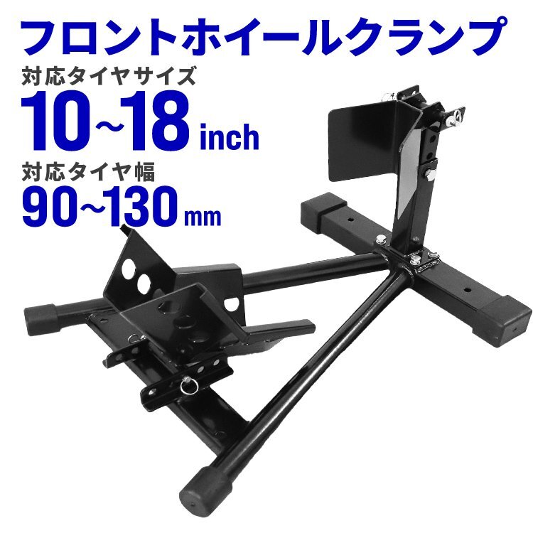 - 新品 フロントホイールクランプ 10~18インチ対応 前後5段階調整 ホイールチョック シーソー型 ミニ~中型バイク 滑り止め バイク スタンド