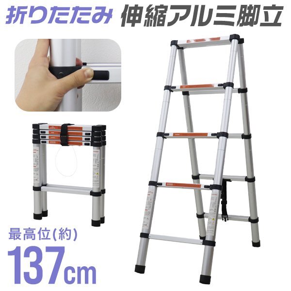 - 新品 アルミ脚立 伸縮 約1.4m 耐荷重150kg 安全ロック付き 折りたたみ コンパクト 洗車 剪定 高所作業 清掃 踏み台 雪下ろし はしご