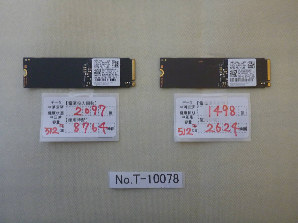 > T-10078 / SSD / SAMSUNG / M.2 2280 / NVMe / 512GB / 2個セット / ゆうパケット / 消去済み / ジャンク扱い