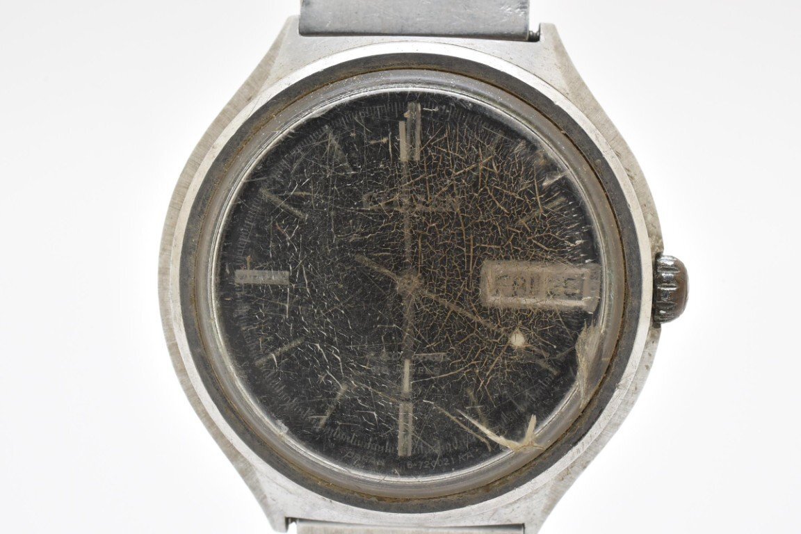 - 稼働品 CITIZEN シチズン 腕時計 メンズ 自動巻き シルバー ブラック文字盤 デイデイト 3針 26ジュエル 4-720016
