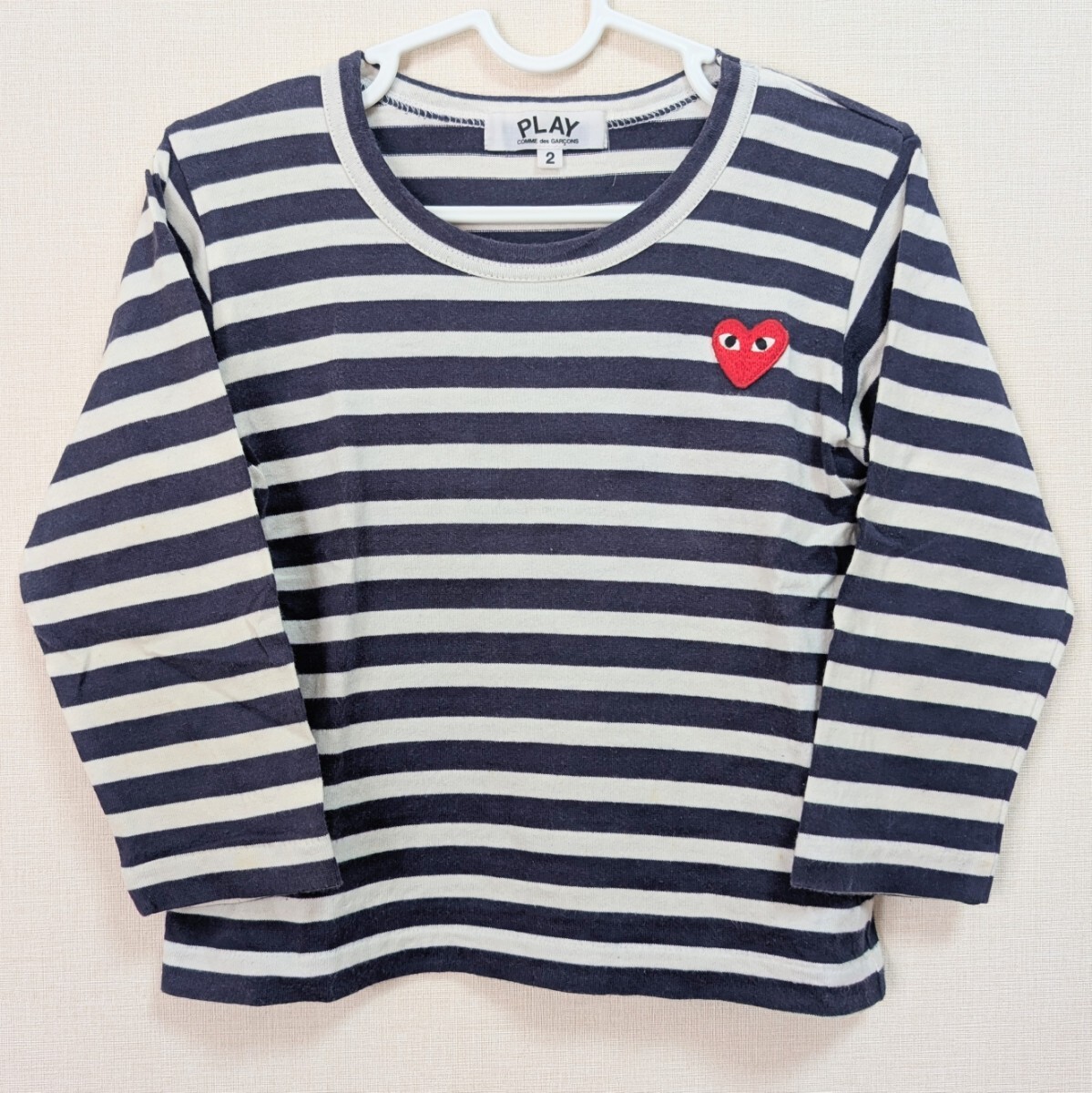 - プレイ コムデギャルソン キッズ サイズ2 ボ―ダ―長袖Tシャツ