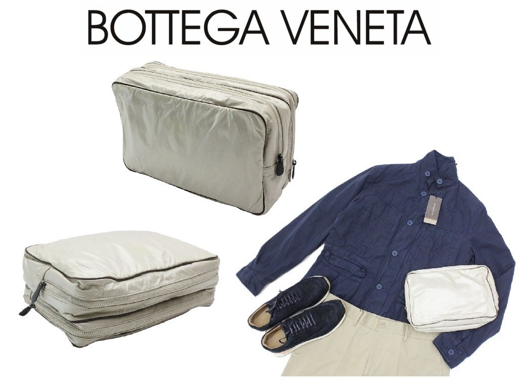 > ●16万新品◆ボッテガヴェネタ◆撥水加工ナイロン2ジップポーチ ベージュ×ブラウン1円