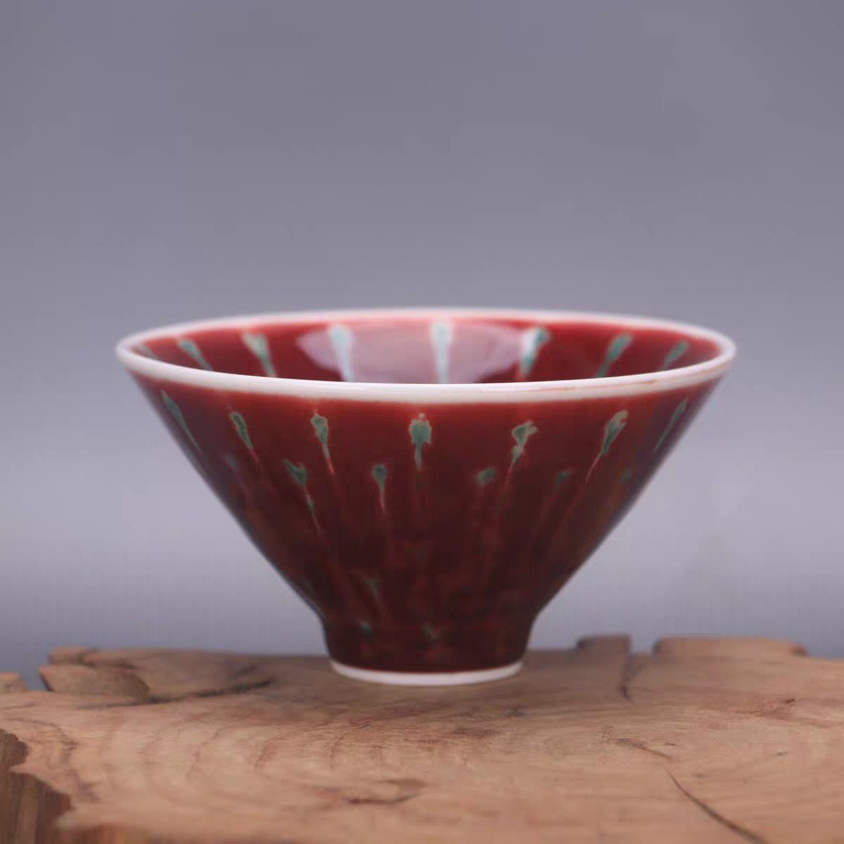 - 景徳鎮 ビンテージ 紅耀釉 笠形茶杯 レトロコレクション 磁器 置物 装飾