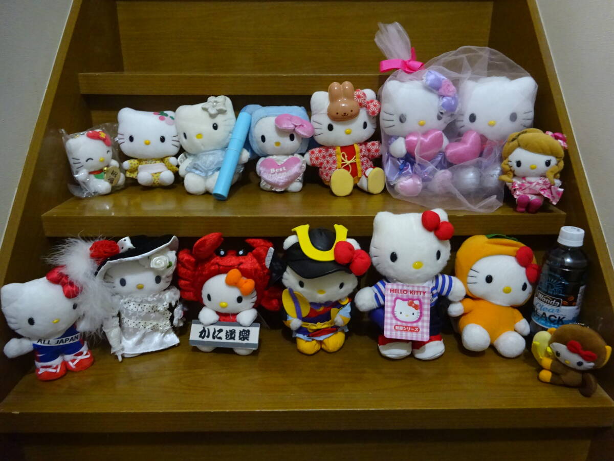 - ハローキティ ぬいぐるみ 豪華15点セット!かに道楽、山梨限定、静岡限定、佐川急便制服、フェミニンドール、電報ぬいぐるみ等!現状で。
