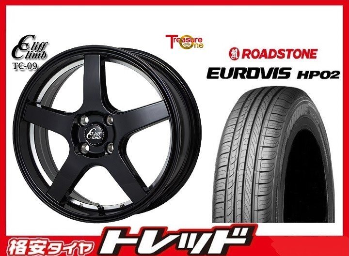 > 数量限定 2023年製)新横浜師岡店 新サマータイヤアルミ4本set クリフクライム TC09 14インチ4.5J4穴100+45 ロードストーン HP02 155/65R14