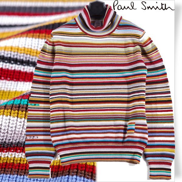 - 新品1円~★定価6.1万 ポールスミス Paul Smith メンズ 長袖 ウール毛 イタリア製 シグネチャーストライプ タートルネックニット S◆7468◆