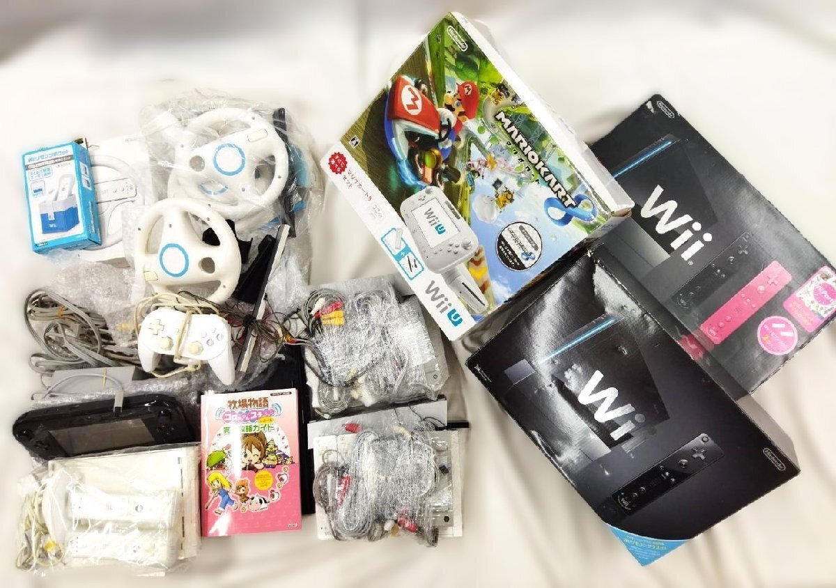 > 【動作未確認】 NINTENDO Wii/WiiU本体 計8台(Wii6台、WiiU2台) Wiiハンドル ヌンチャクその他周辺機器 まとめ #1023-2