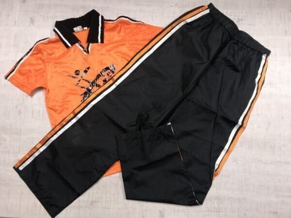 - USA製 HIGH5 リメイク スパンコール刺繍 ポロシャツ × シャカシャカ トラックパンツ ユニフォーム上下セットアップ レディース M