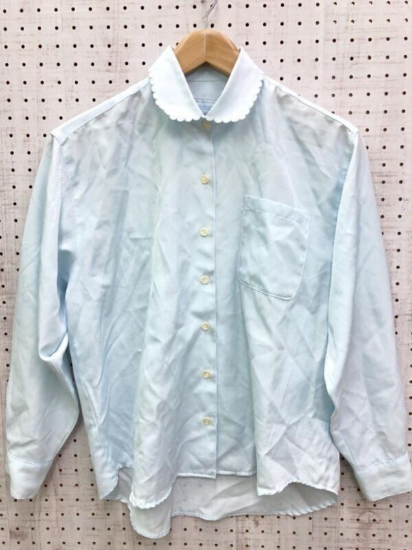 > IL SUFFIT イルサフィット ガーリー オールド レトロ カントリー 古着 フリルカラー ブラウス 日本製 レディース サイズ11 水色