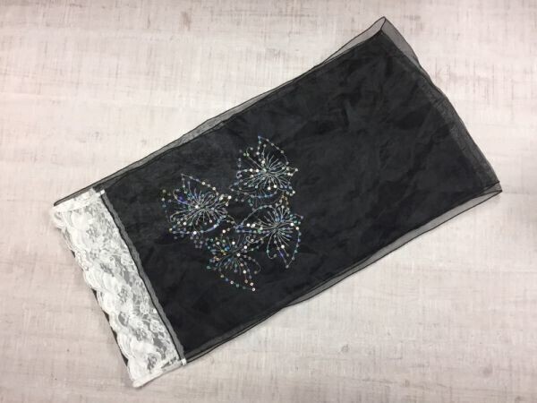 - オールド レトロ オリエンタル 古着小物 蝶々 バタフライ スパンコール刺繍 レース オーガンジー ストール レディース 黒