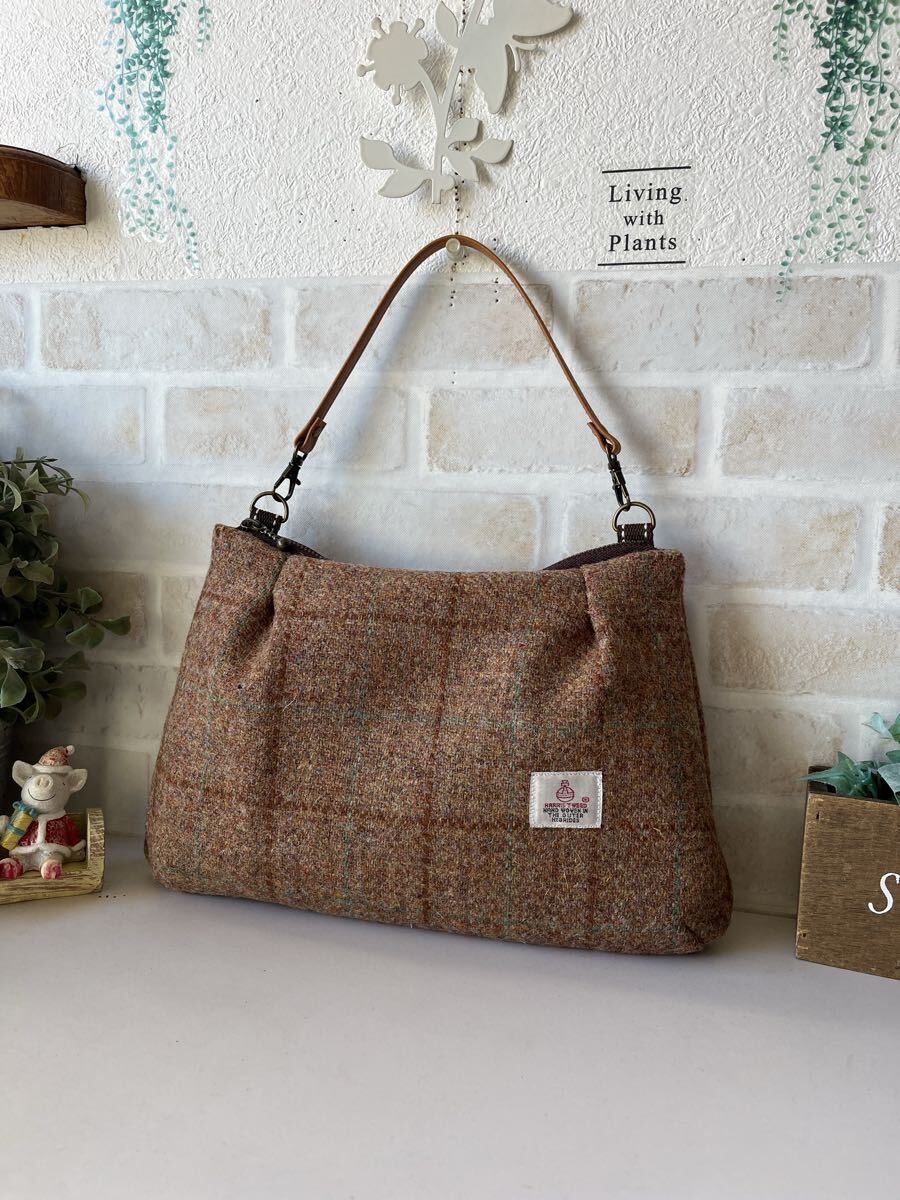 > ハンドメイド.* Harris Tweed生地(ハリスツイード)*小さめsizeの3Wayバッグ*取り外し可能持ち手とショルダーひも付き.