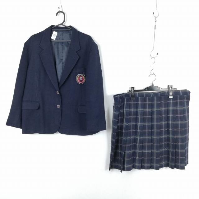 - 1円 ブレザー チェックスカート 2点セット 大きいサイズ 特大 冬物 コロンビアインターナショナルスクール 紺 制服 中古 ランクC EY4949