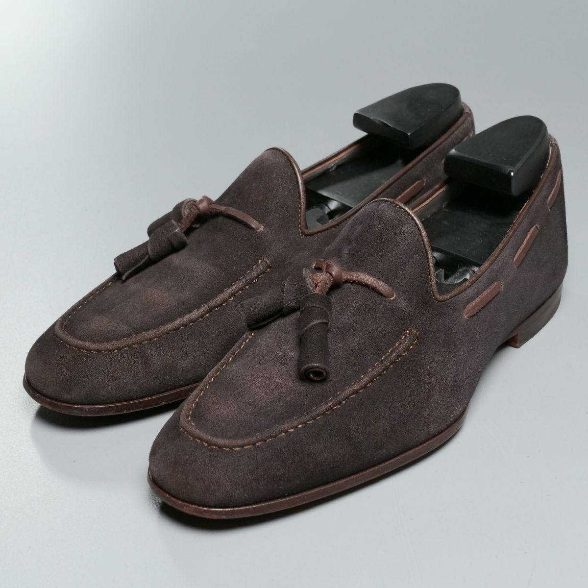 - MI2457//イタリア製*サントーニ/Santoni*メンズ5/タッセルローファー/レザースリッポン/革靴/茶/ブラウン