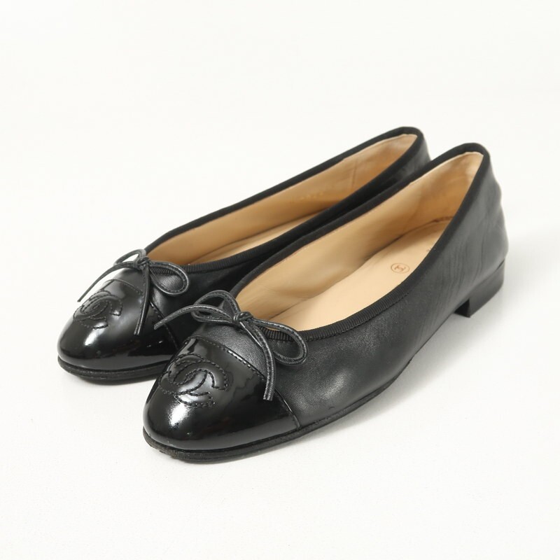 - MI1917▼イタリア製*シャネル CHANEL*G02819 CC/ココマーク リボン バレリーナ フラットシューズ パンプス 靴 36C(23.0cm相当) ブラック