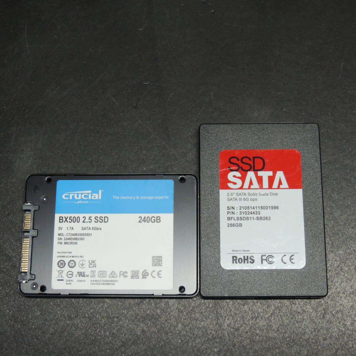- 2台まとめ売り【検品済み】crucial SSD 240GB CT240BX500SSD1 / ROHS 256GB (使用時間:0h・1797h) 管理:み-54