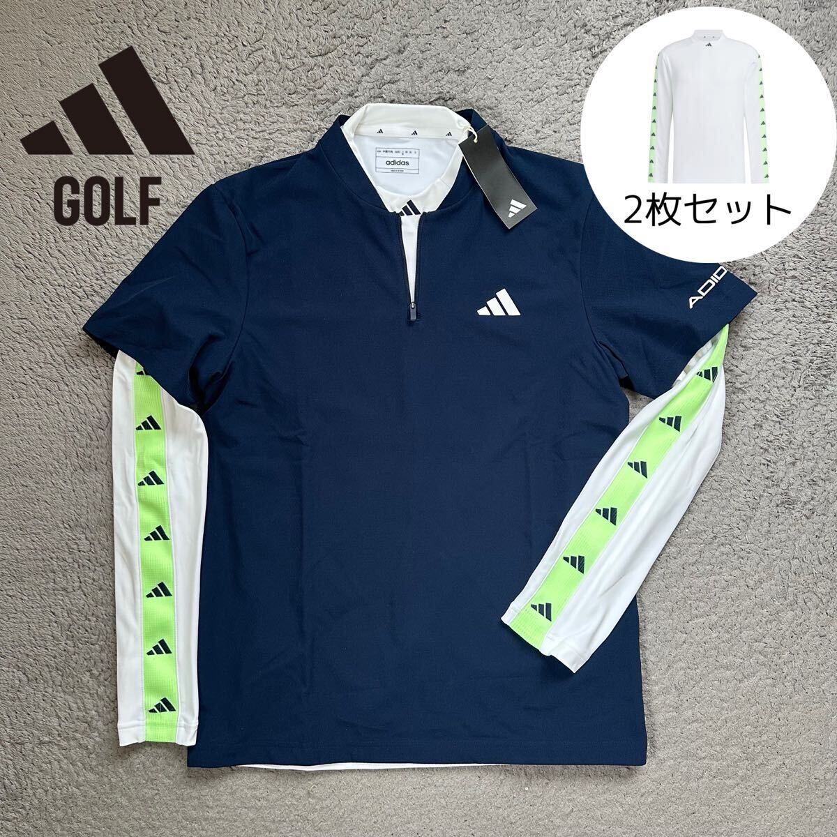 - 14,960円 Lサイズ 新品 adidas GOLF 2枚セット レイヤード 長袖 半袖 シャツ インナー ポロシャツ メンズ ウェア アディダスゴルフ 紺色 白