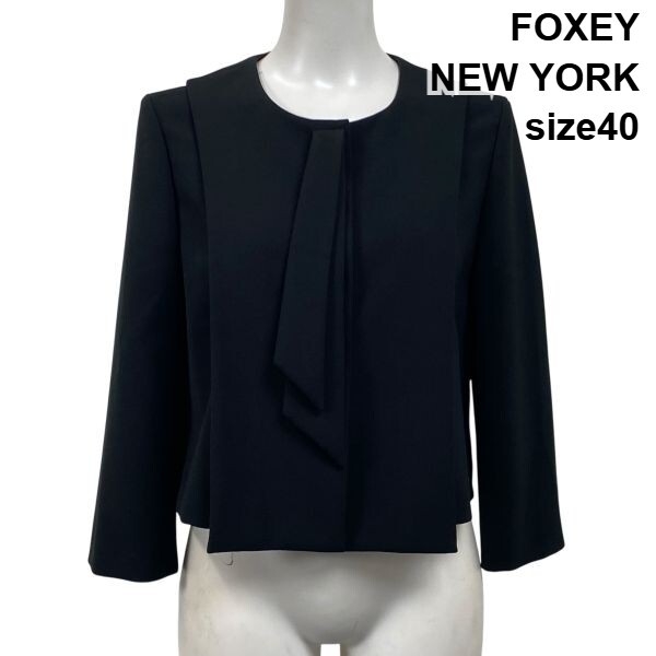 > フォクシーニューヨーク FOXEY NEW YORK ノーカラージャケット 長袖 セーラー 黒 40 L 11号 レディース S5V488