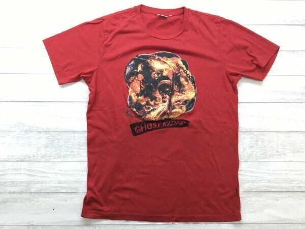 > MARVELマーベル × GU ジーユー アメコミ ゴーストライダー Ghost Rider ストリート スカル 炎 イラスト 半袖Tシャツ レディース L 赤