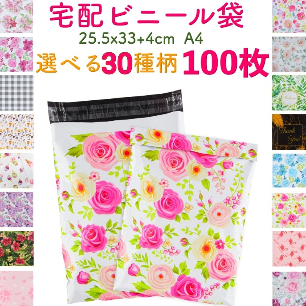 > 【100枚】選べる30柄 宅配ビニール袋 宅配ポリ袋 A4サイズ 梱包 透けない 33cm*25.5cm フタ4cm カラー 柄①