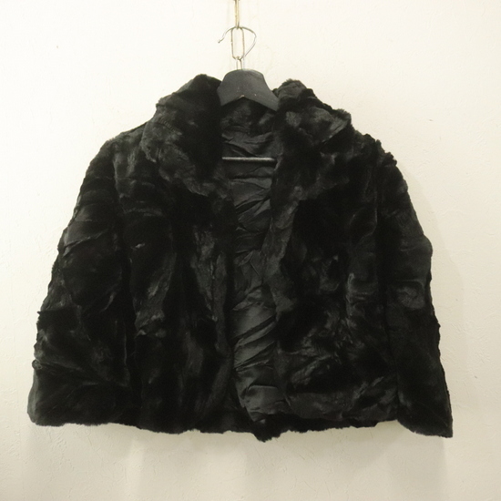 > m241 90sビンテージ ボレロ■1990年代製 XLサイズくらい レディース 黒 ブラック ポンチョ ポリエステル フェイクファー アメカジ 00s