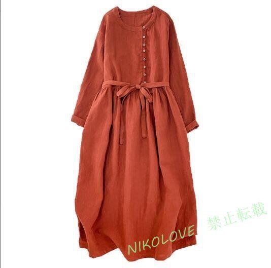 - ☆新品 ワンピース 長袖 綿麻 着痩せ Aライン ロングワンピース ポケット付き リネン ゆっ たり 大きいサイズ 通勤体型カバー