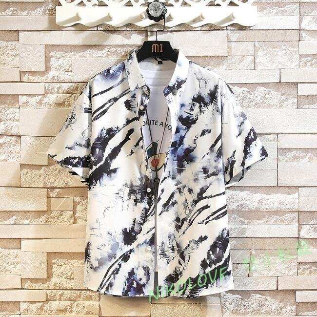 > ☆新品 メンズ夏物 100% ポリアミド 半袖シャツ ゆったりフィット カジュアル 薄手 メンズ半袖花柄シャツSIZE:M
