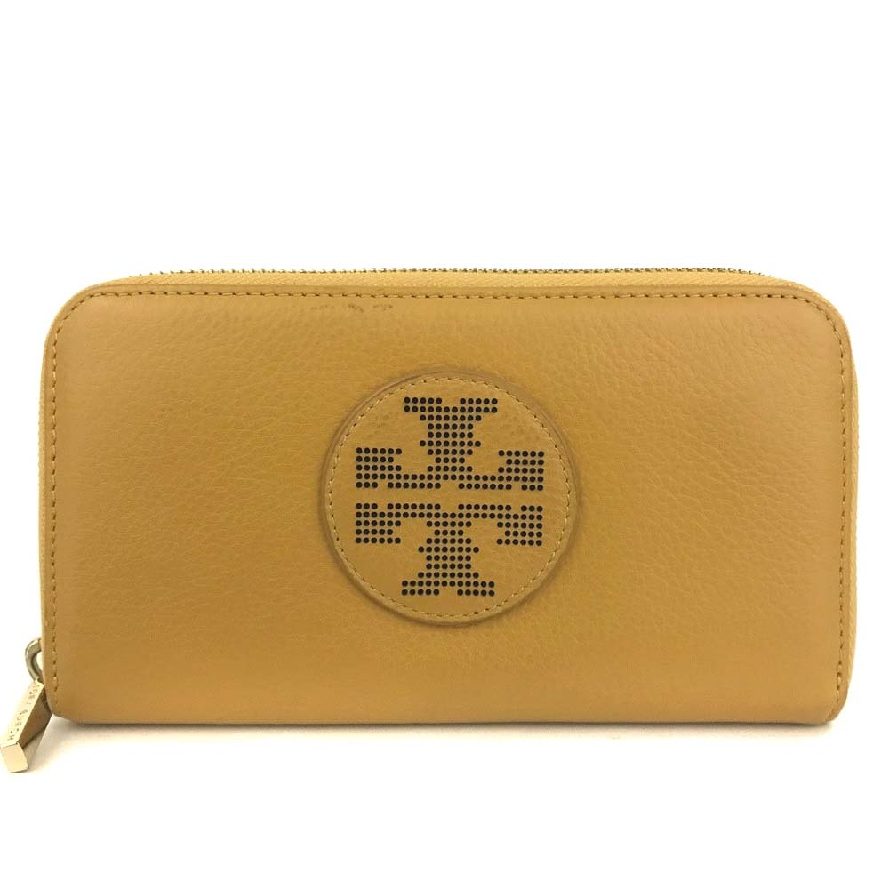 > 1円 美品 TORY BURCH トリーバーチ パンチングロゴ レザー ラウンドファスナー 長財布 イエロー /JP0068